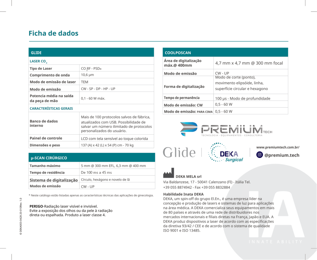 • Controle de comprimento corte, área ablação, profundidade de ablação e de coagulação.