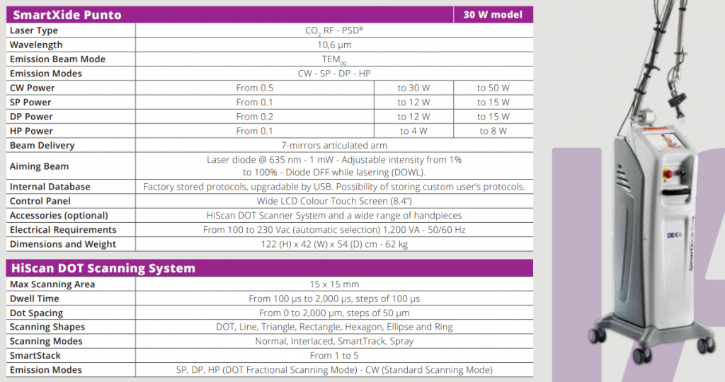 O núcleo do laser Smartxide Touch é uma fonte de RF CO₂ capacitada pela tecnologia PSD® que pode produzir pulsos de laser fracionários com formas de pulso variáveis, duração, energia e potências de pico.