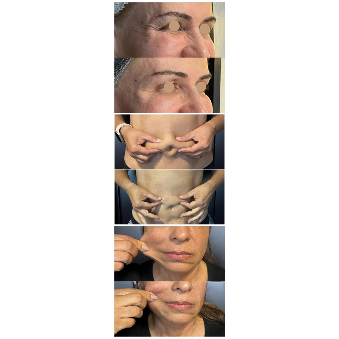 Melhora a firmeza, elasticidade e textura da pele, com resultados que incluem redução de flacidez e linhas finas.