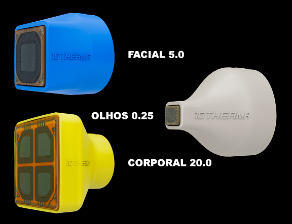 Existem três ponteiras principais: uma pequena para as pálpebras, uma de tamanho intermediário para rosto e pescoço (incluindo o colo), e uma maior para o corpo (como abdômen, glúteos e coxas).
